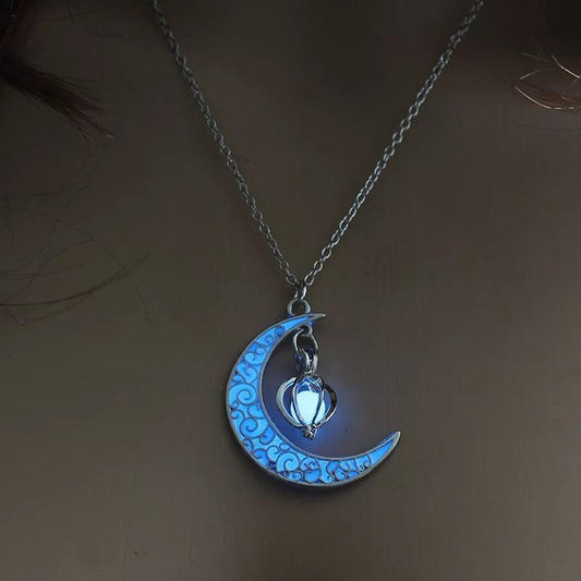 Glow In The Dark Crescent Moon Pendant Necklace